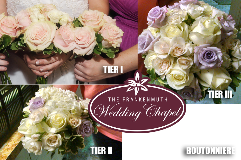 • Fresh floral bouquet from our Tier II selection and fresh floral boutonniere for groom